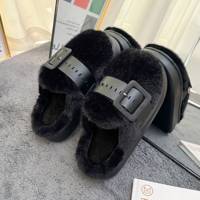 women fur slippers autumn and winter new style with plush tick